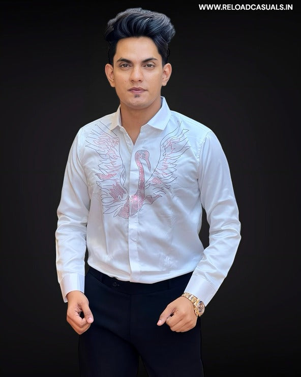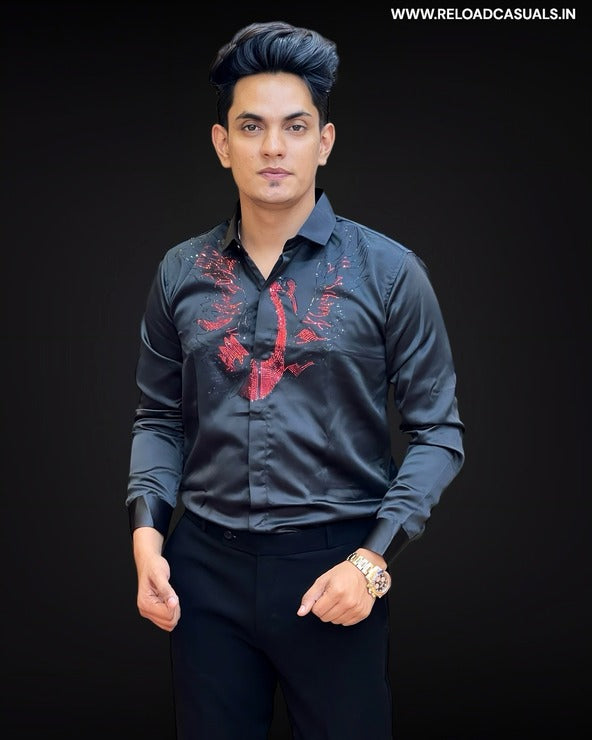 Red Crane Diamond Satin Shirt